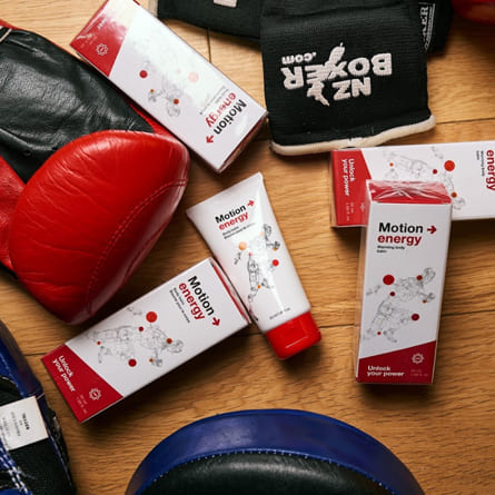 El gel Motion Energy se basa en recetas de la medicina oriental. Los aceites de romero y eucalipto penetran profundamente en los tejidos, proporcionándoles compuestos orgánicos curativos. El jengibre calienta intensamente el área dañada y estimula el flujo sanguíneo.